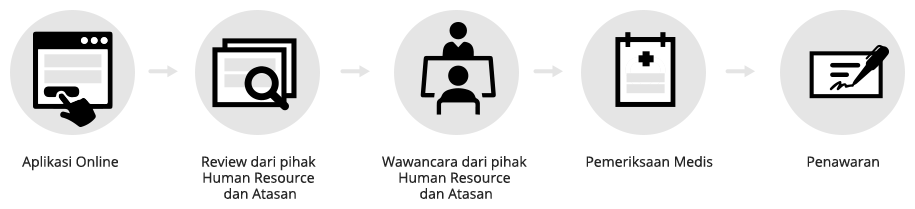 Ada lima tahapan dalam proses rekrutmen dan seleksi untuk kesempatan magang.